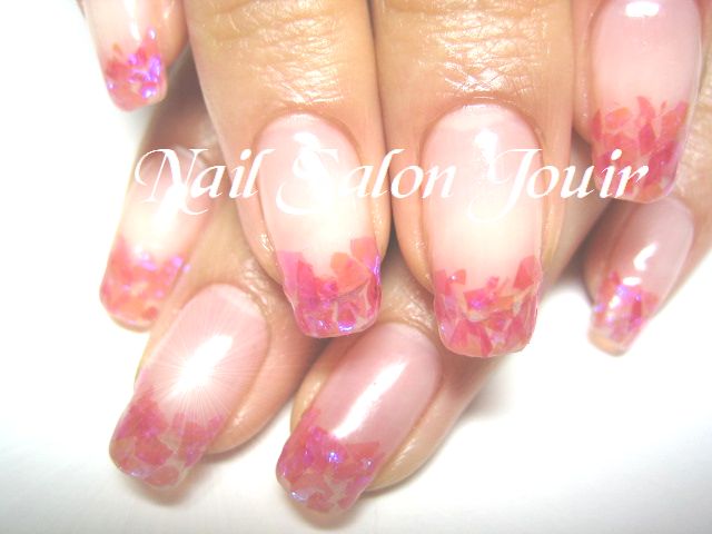 先端には、乱切りピンクのホログラムをグラデーションのように埋め込みました!(^^)!