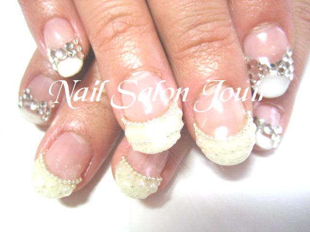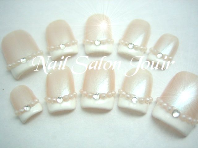 そして、クリスタルのストーンとホワイトパールでフレンチラインを清楚に演出です(^^♪