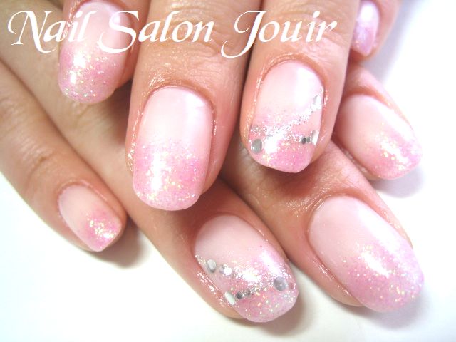 ラメ入りの乳白色でグラデに・・・