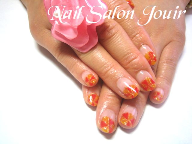 先端に、レッド×イエローでジェルフラワー♪