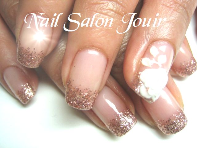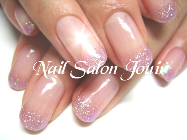 先端はラメ入りの乳白色でグラデーション。