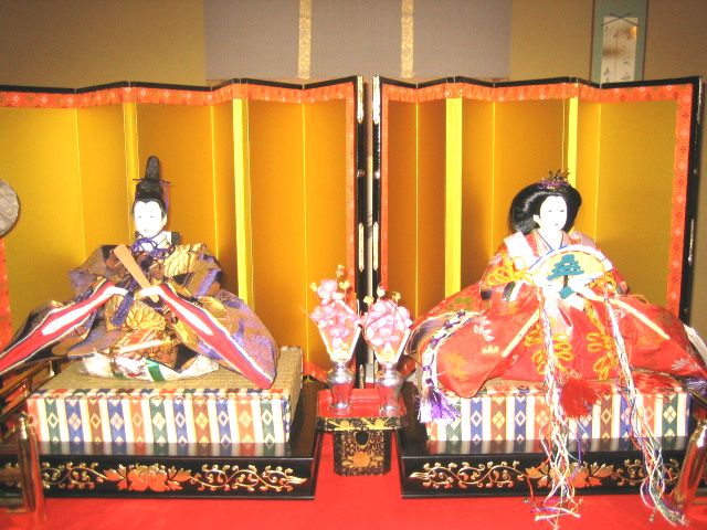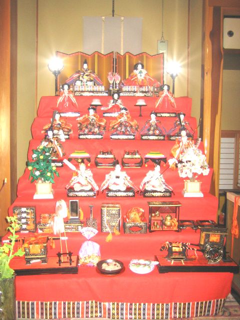 なかなか実家には帰らないので、たまに帰ったら雛人形の前にチョコンと座って眺めております♪