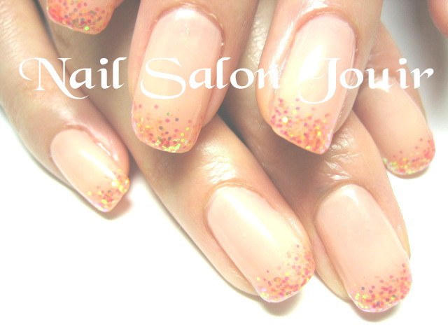 先端には、オレンジのラメをほんのりとフレンチっぽくのせました♪