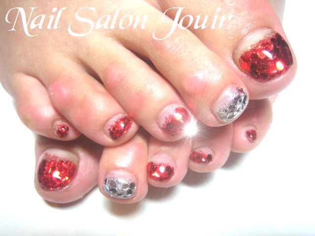 レッド+シルバーのホログラムフットをグラデで作成♪