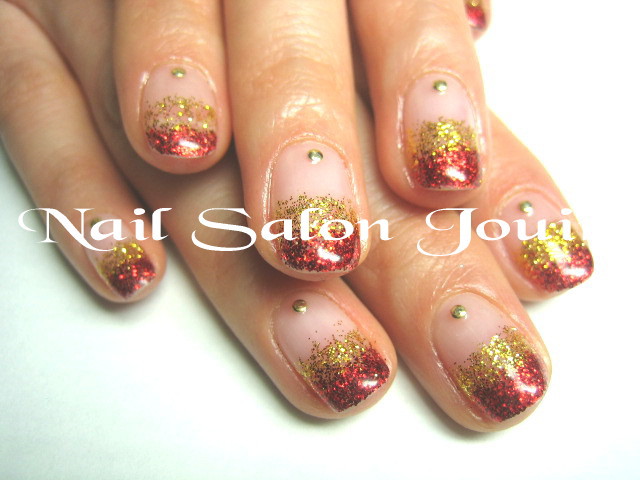 レッド&ゴールドの2色ラメで、Wグラデーションです(*^^)v