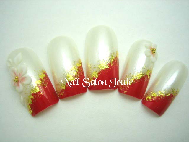ホワイトパールのベースに、真っ赤なフレンチネイル。