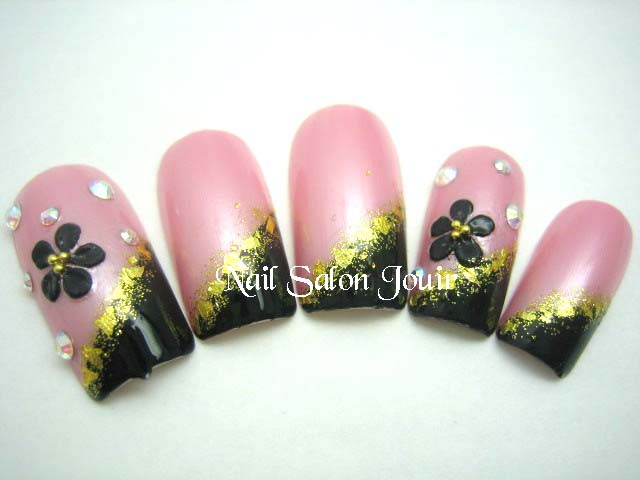 鮮やかなパールピンクに、スッキリ感のあるブラックフレンチ。