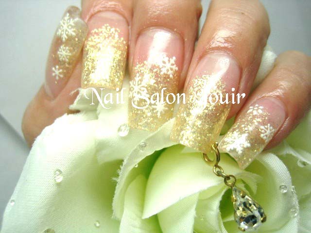 キラキラのゴールドグラデーションに雪の結晶♪+ピアスの豪華版!