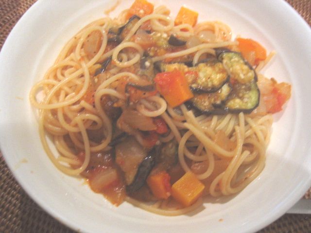 なすとトマトのパスタです(*^^)v