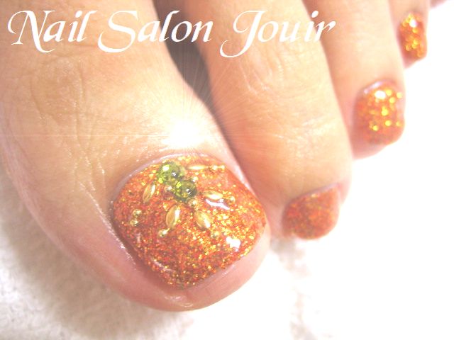 レッドオレンジのラメラメフット♪