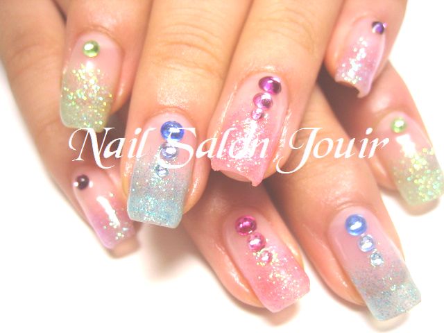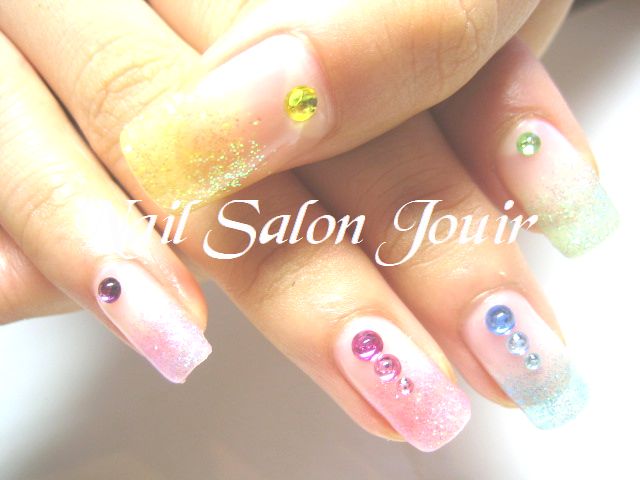 パステルカラーのラメを5色使用してグラデーションに