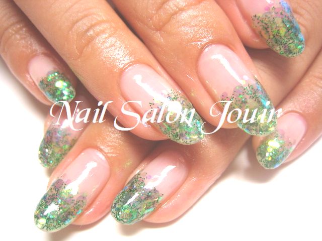 ラメの上に、クリアグリーンのホログラムをたくさんのせました(*^^)v