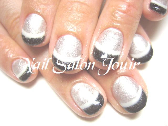 フレンチは黒ラメ&ホワイトカラー