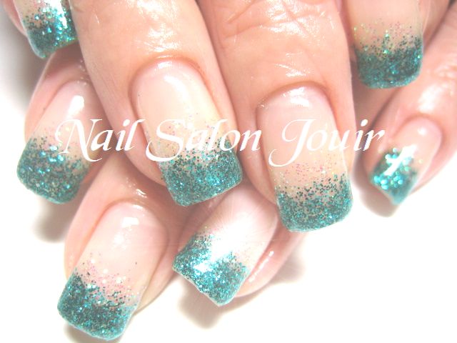 ラメグラデーションは、淡いグリーン&ターコイズカラーをチョイス