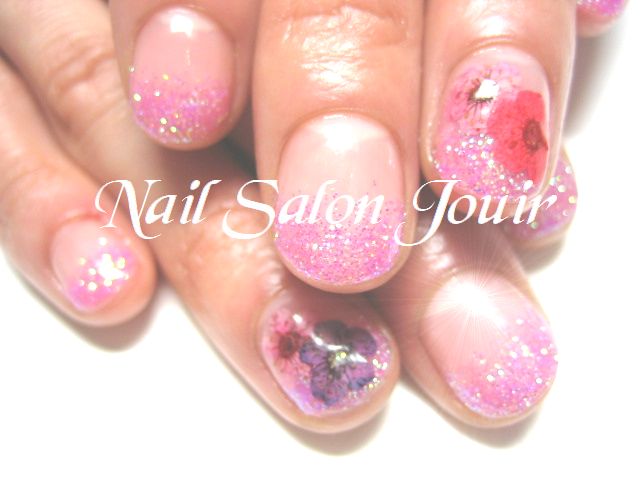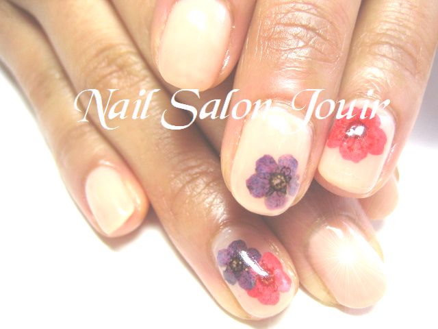 最近人気の押し花を埋め込んだネイルのご紹介!(^^)!